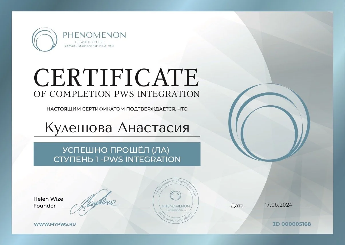 Дополнительно я прошла обучение в школе Елены Вайс (I ступень, интегратор), что расширило мой взгляд на работу с внутренними частями и целостностью личности.